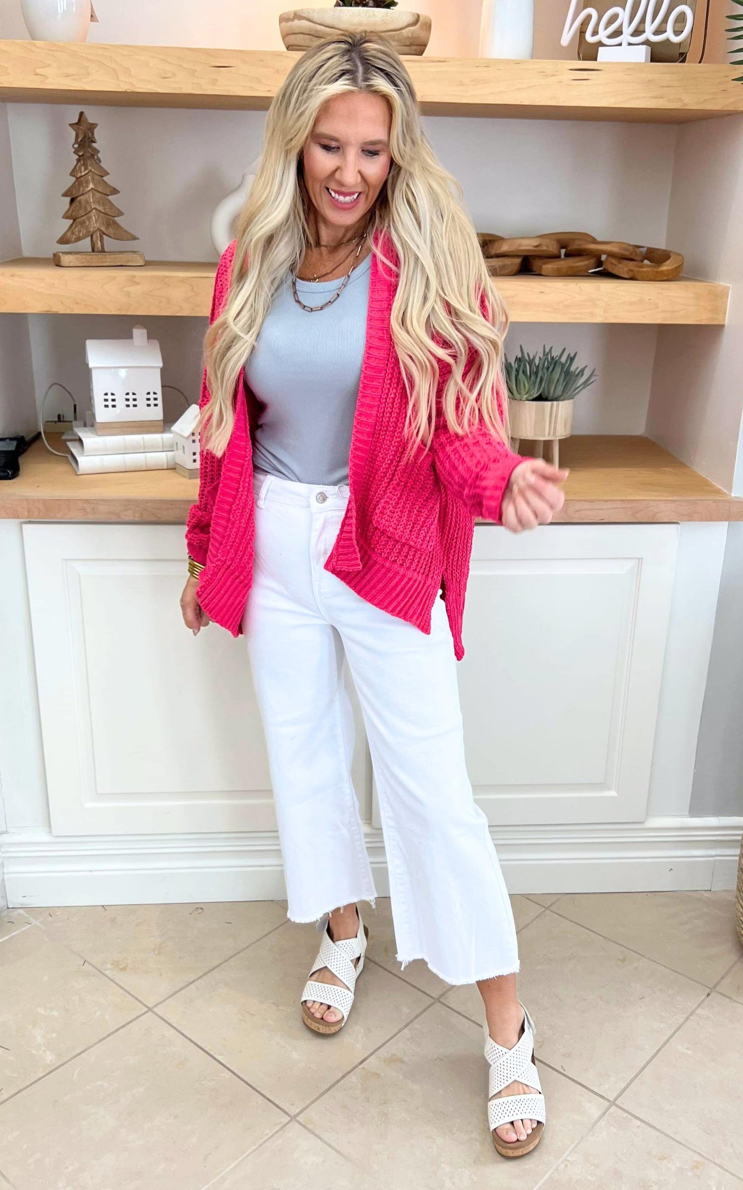 - The Owner, SARA (long blond hair), is wearing a size SMALL and would stick with her size.