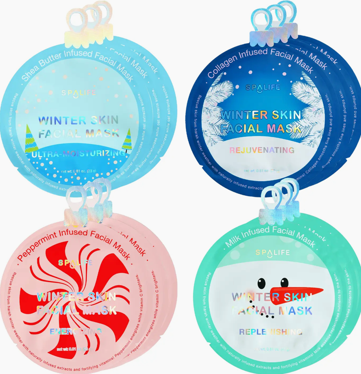 Bring the Holiday spirit in! These facial masks are fun & infused with peppermint and shea butter to help hydrate the skin and give a festive glow.