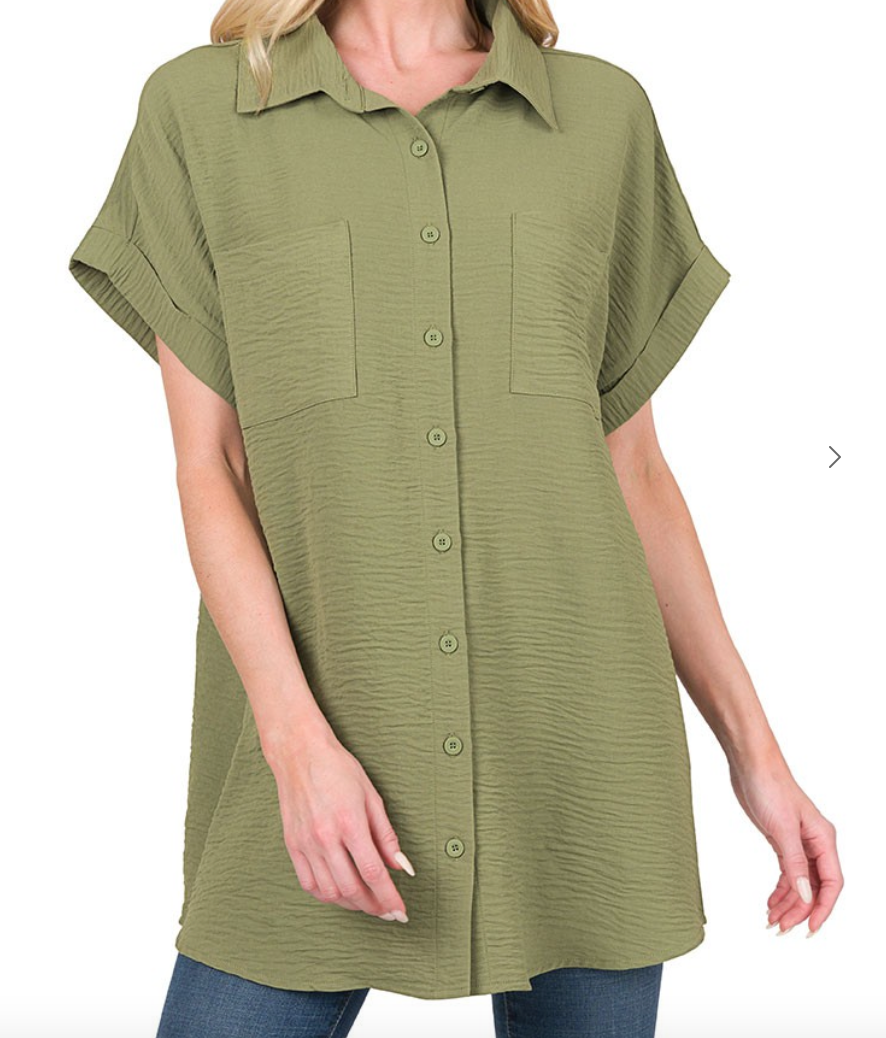AIRFLOW BUTTON FRONT SHIRT by Zenana - Final Sale