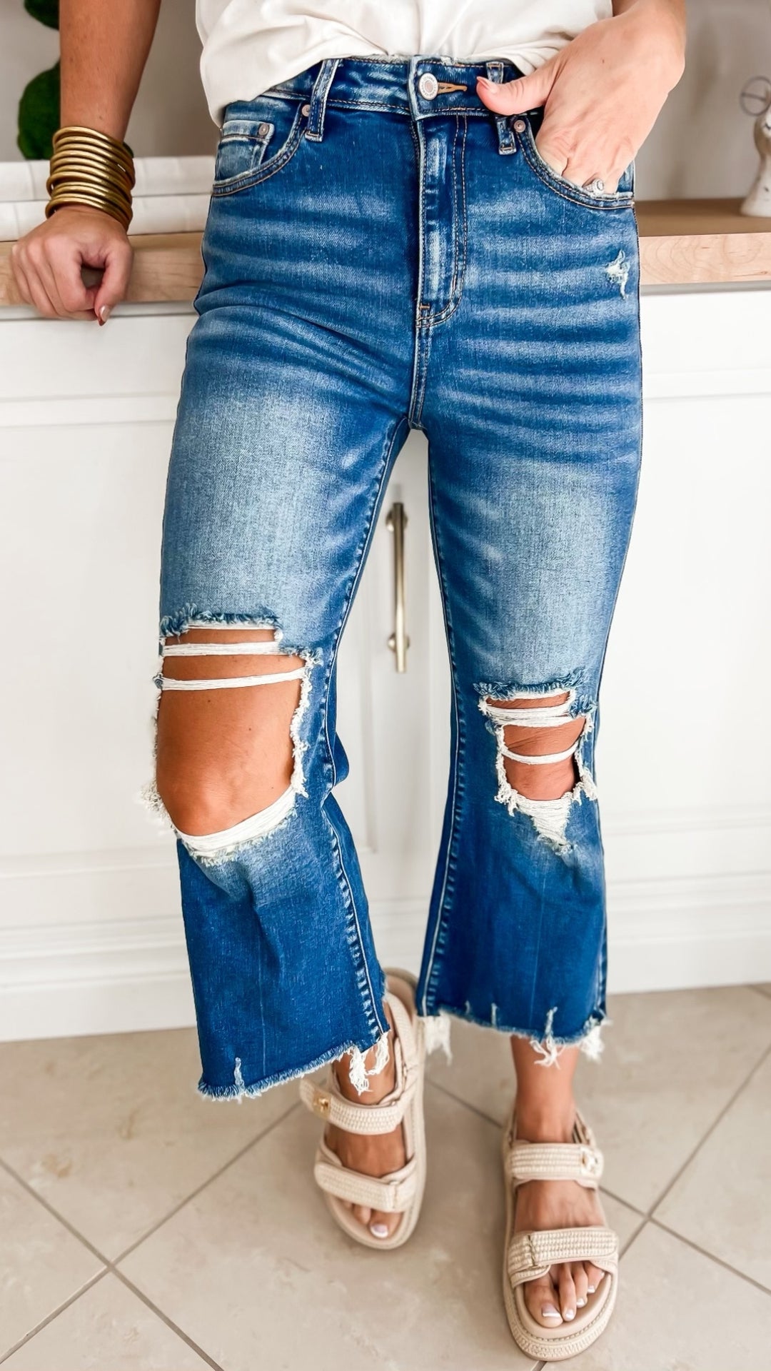 Zenana High Waist Distressed Wide Leg Cropped Denim Jeans - Final Sale